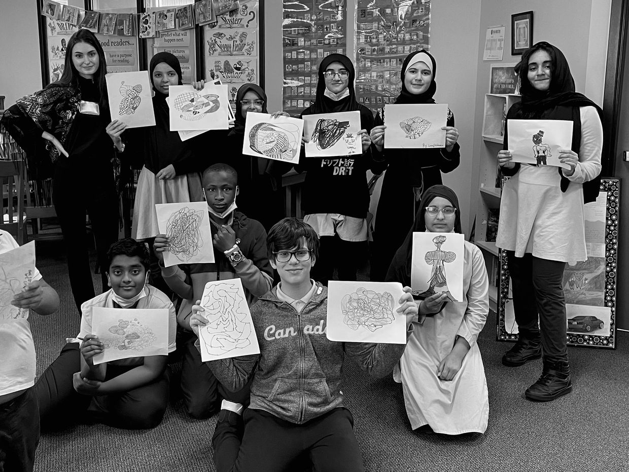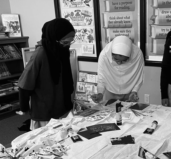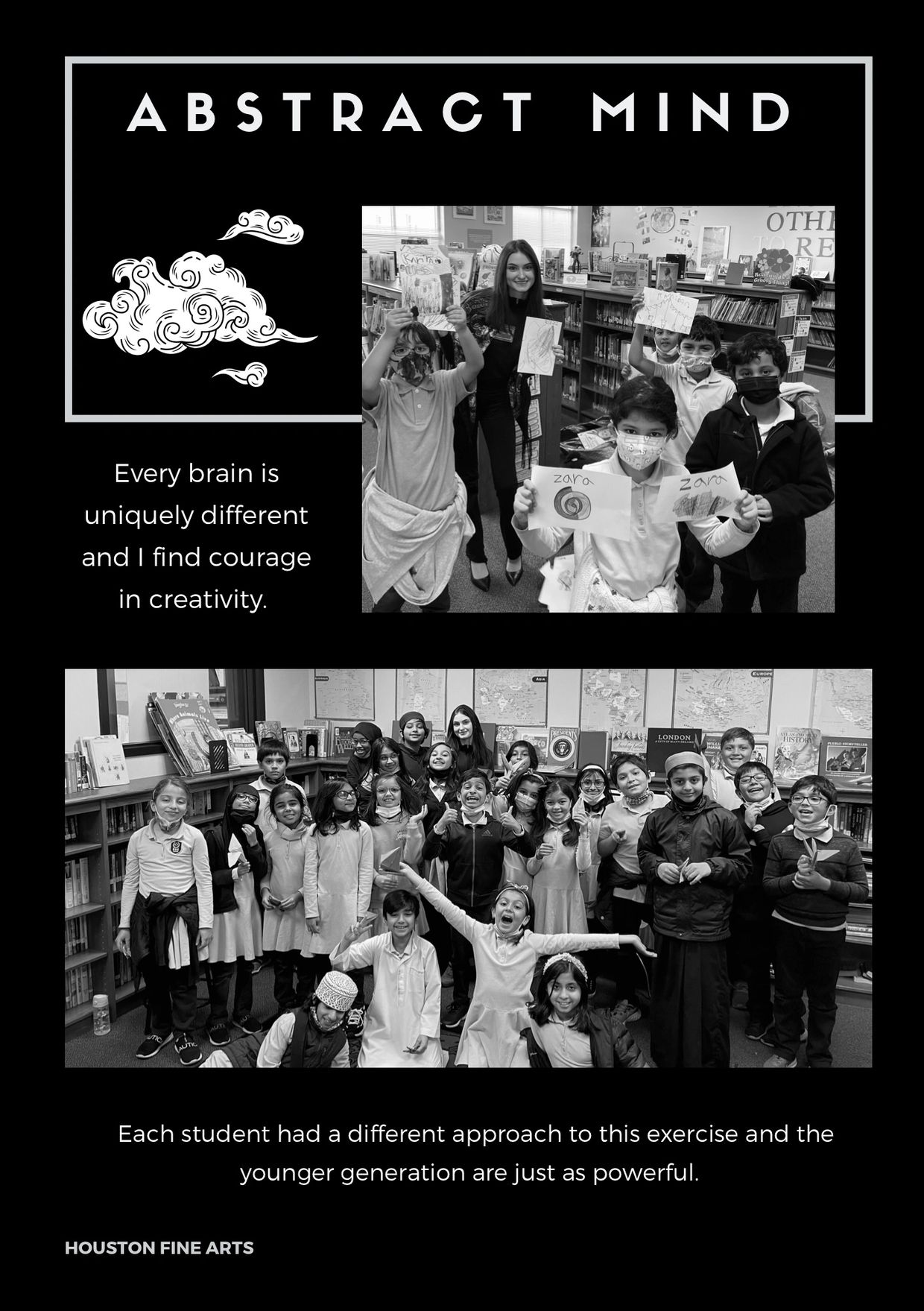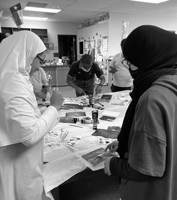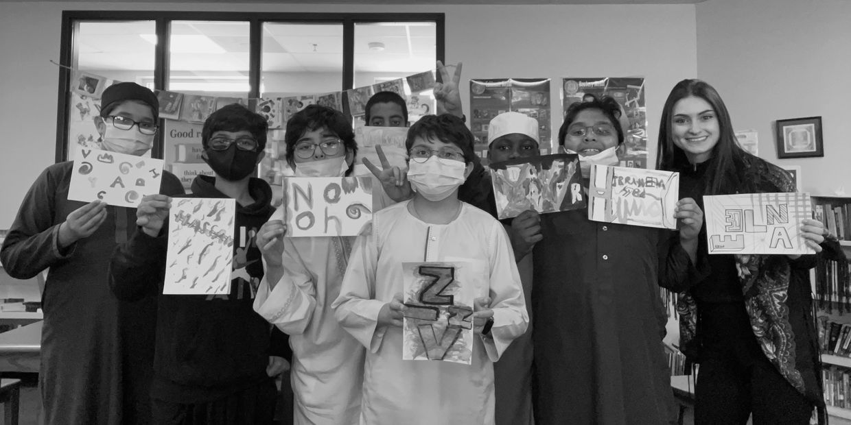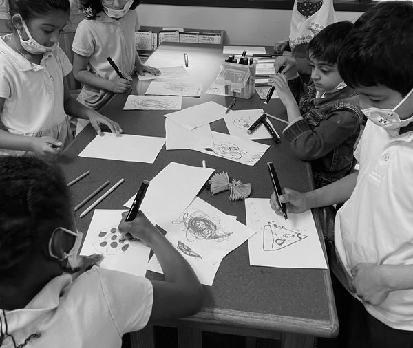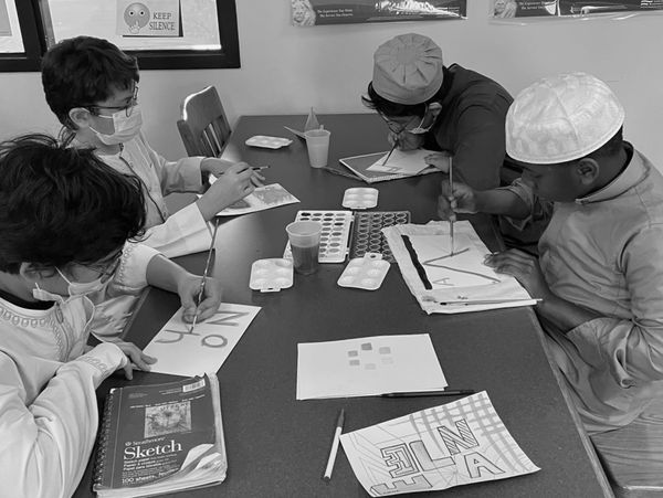 My first steps to teaching abstract was learning the names of my students. In this lesson I challenged the bright minds to use every letter of their name and leave no empty space. Encouraging to think outside of the box, there is no correct way to create art. The students have the creative freedom to write thier name upside down, backwards, colorful, or even monochromatic. Once each student had a concept down on their canvas, we went in with water color. I believe for me to successfully learn the creative minds of BHA students, I will start by pushing their creative boundaries. - Elena Loviea